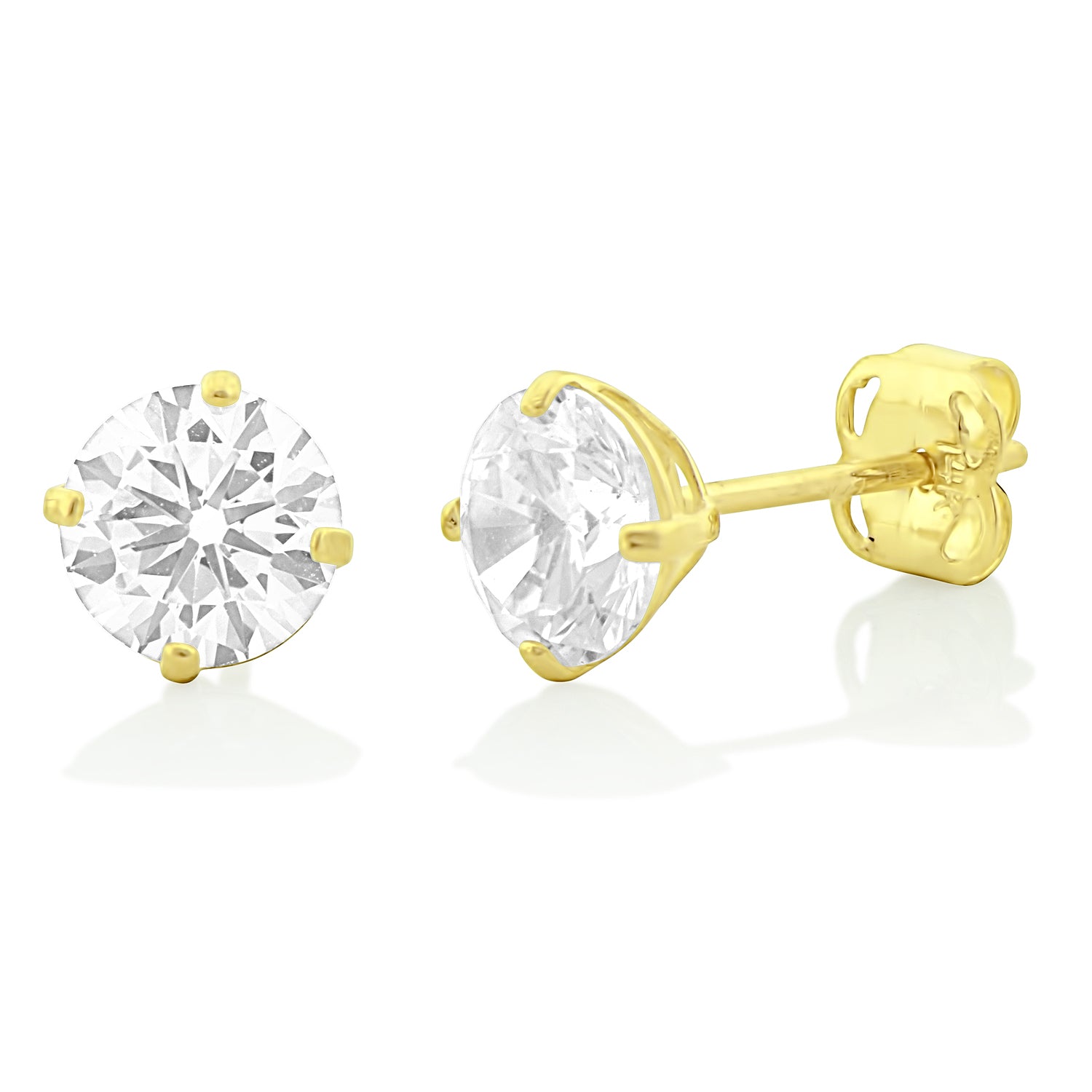 14K Yellow Gold .90ct Cz Round Stud Earrings