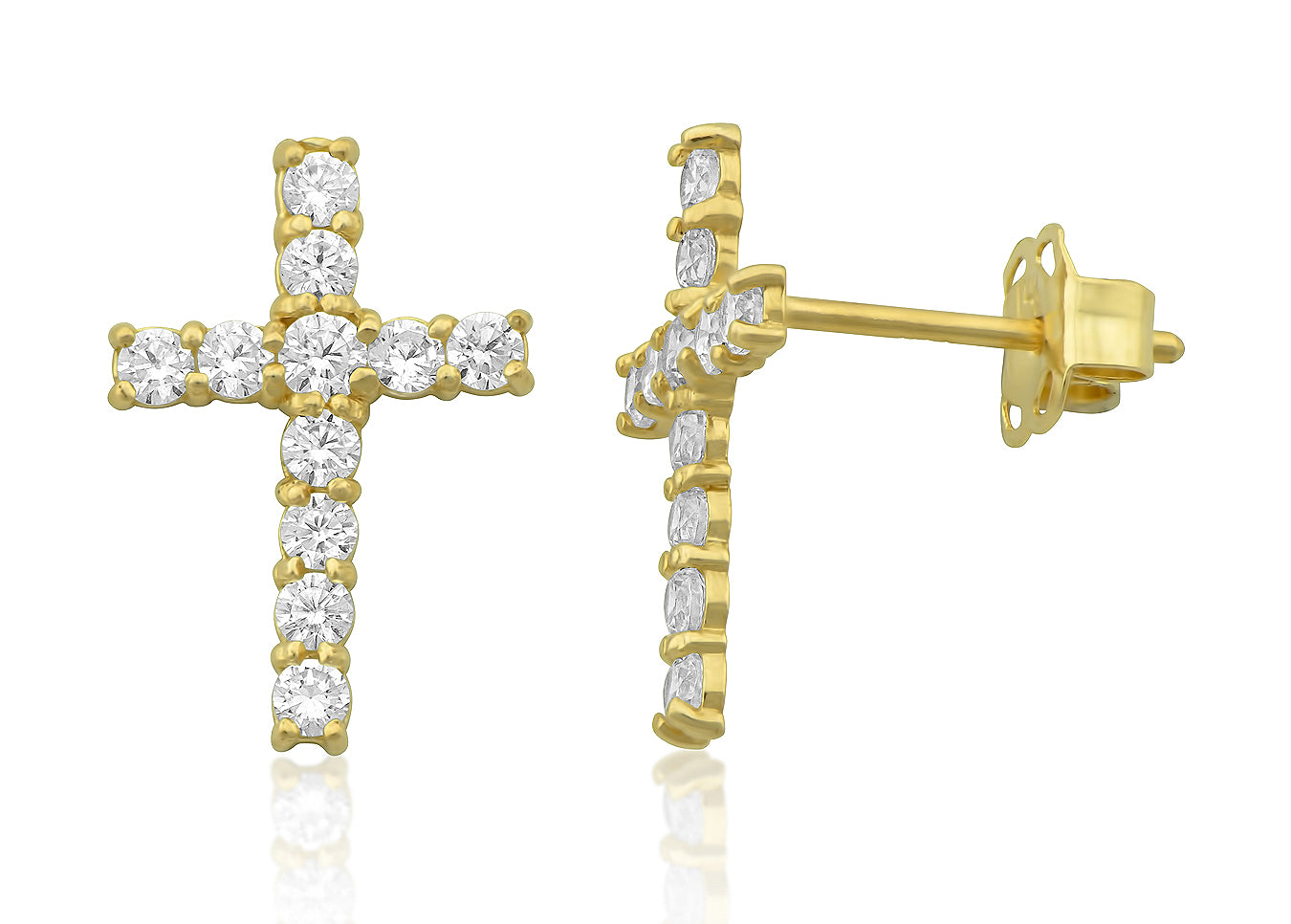 14K Yellow Gold Cz Small Cross Stud Earrings - 0.43in