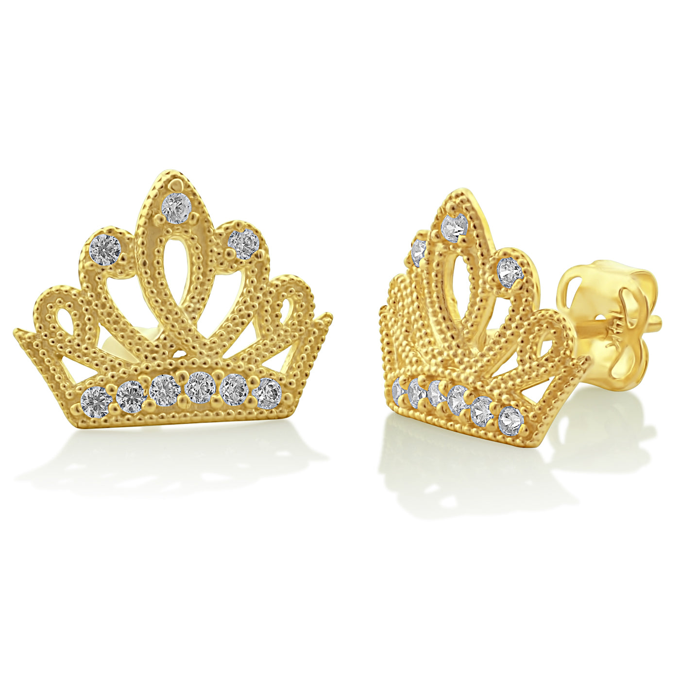 14K Yellow Gold Cz Small Crown Stud Earrings - 0.40in
