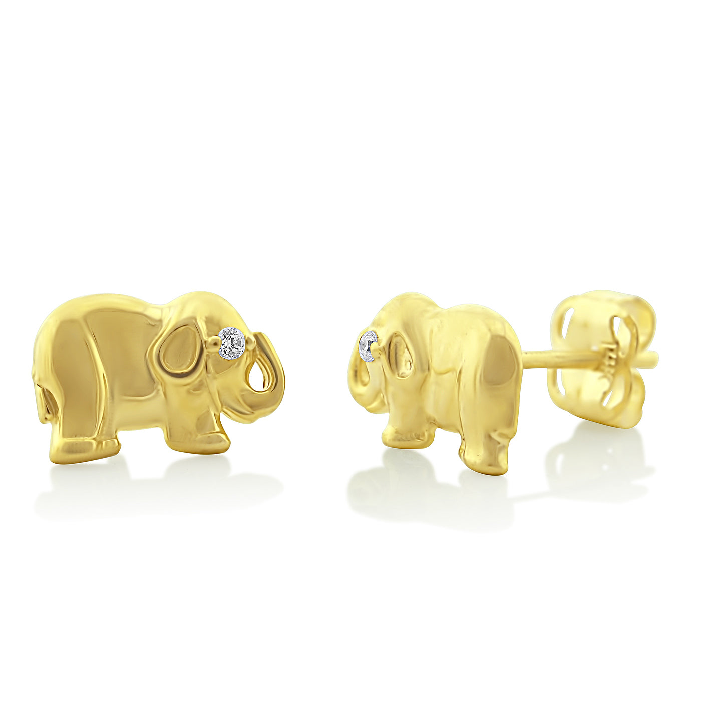 - 14K SOLID GOLD: This pair of 14K Yellow Gold Cz Small Elephant Stud Earrings is made of solid 14K gold and each piece is carefully Stamped with 14K for certification.