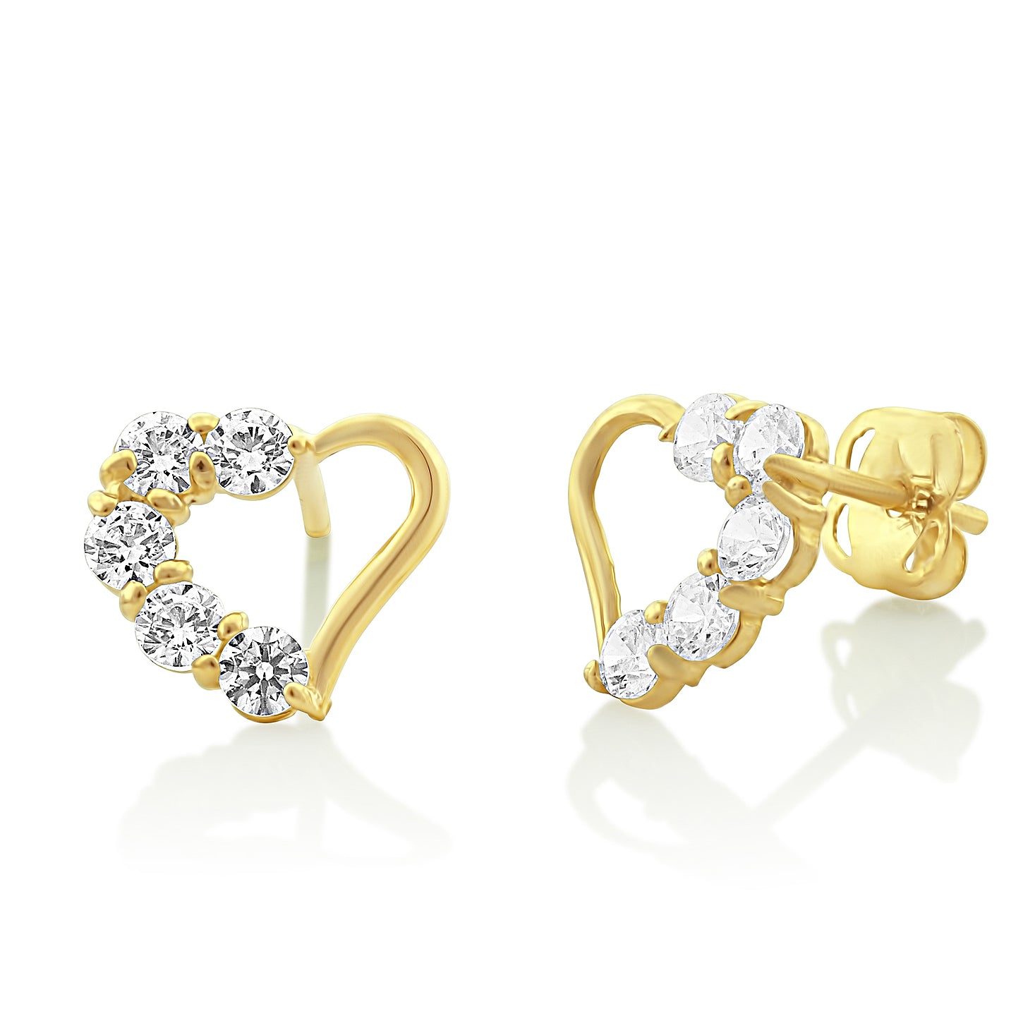14K Yellow Gold Cz Small Heart Stud Earrings - 0.30 in