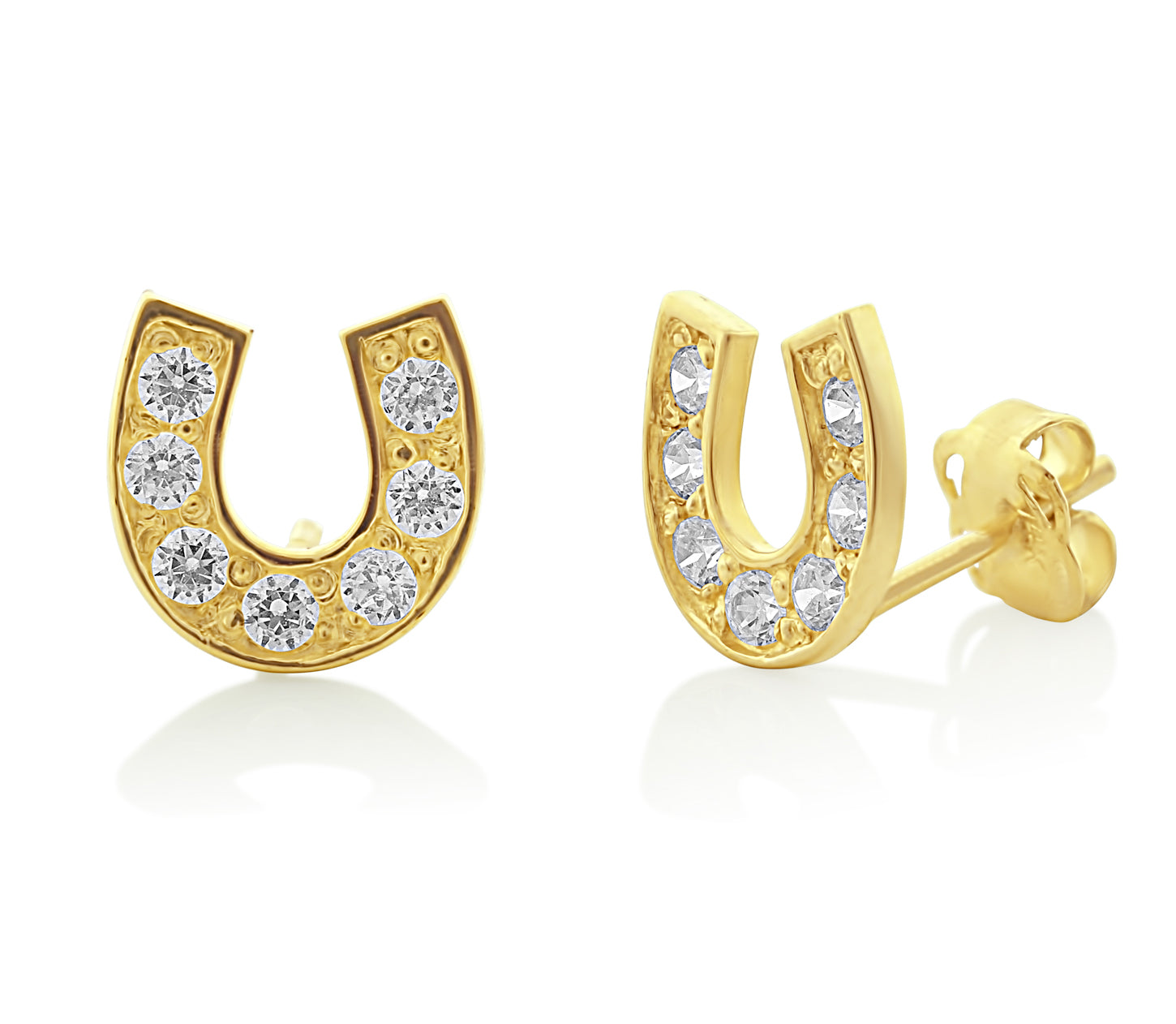 14K Yellow Gold Cz Small Lucky Horseshoe Stud Earrings - 0.28 in