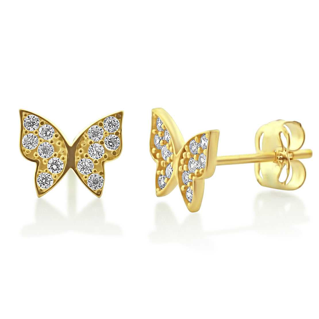 14K Yellow Gold Cz Tiny Butterfly Stud Earrings - 0.24in