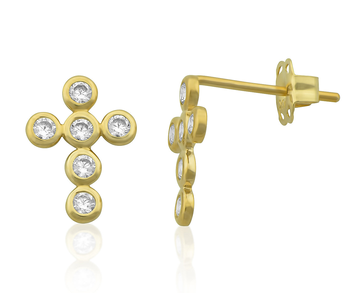 14K Yellow Gold Cz Tiny Cross Stud Earrings - 0.35in