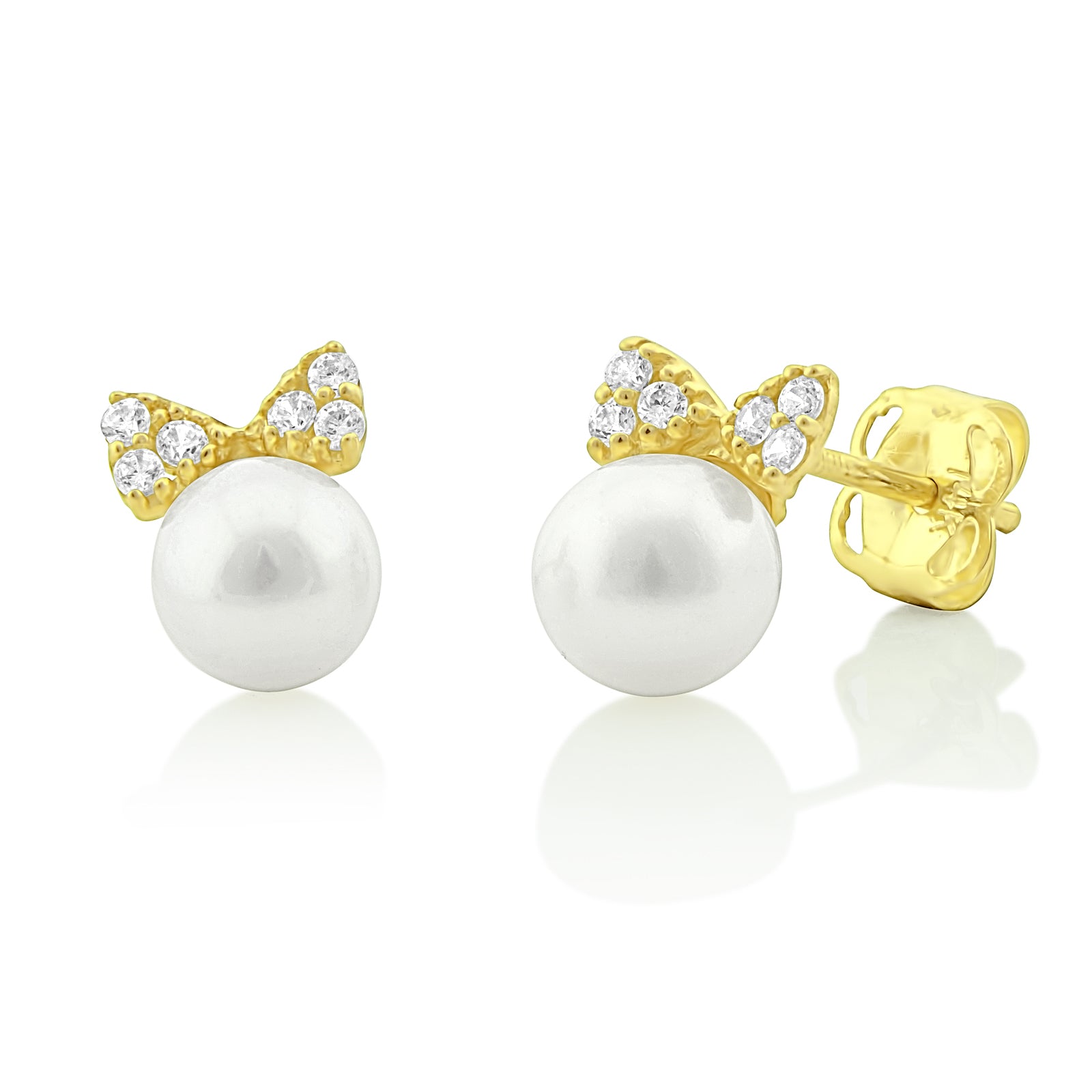 14K Yellow Gold Freshwater Pearl & Cz Bow Stud Earrings - 0.27 in