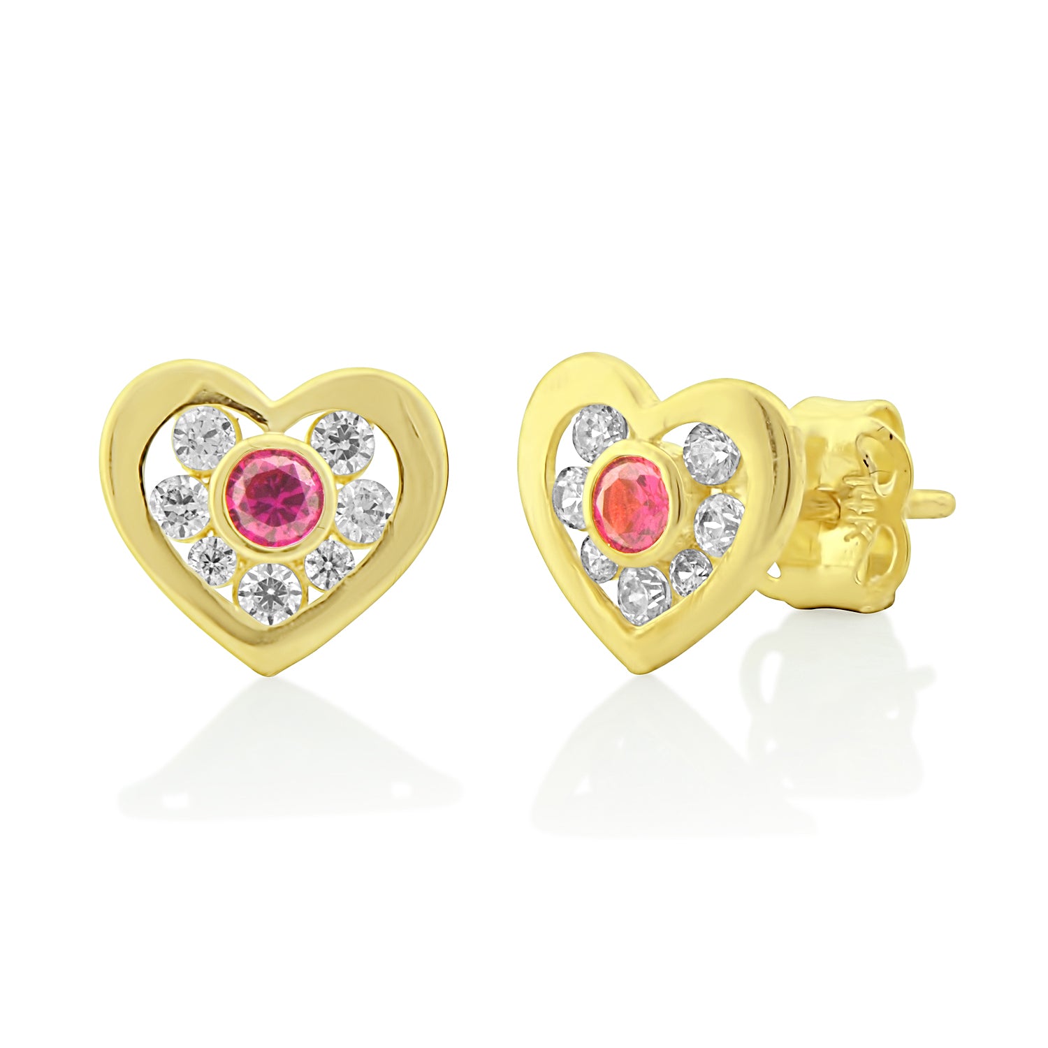 - 14K SOLID GOLD: This pair of 14K Yellow Gold Red Cz Small Heart Stud Earrings is made of solid 14K gold and each piece is carefully Stamped with 14K for certification.