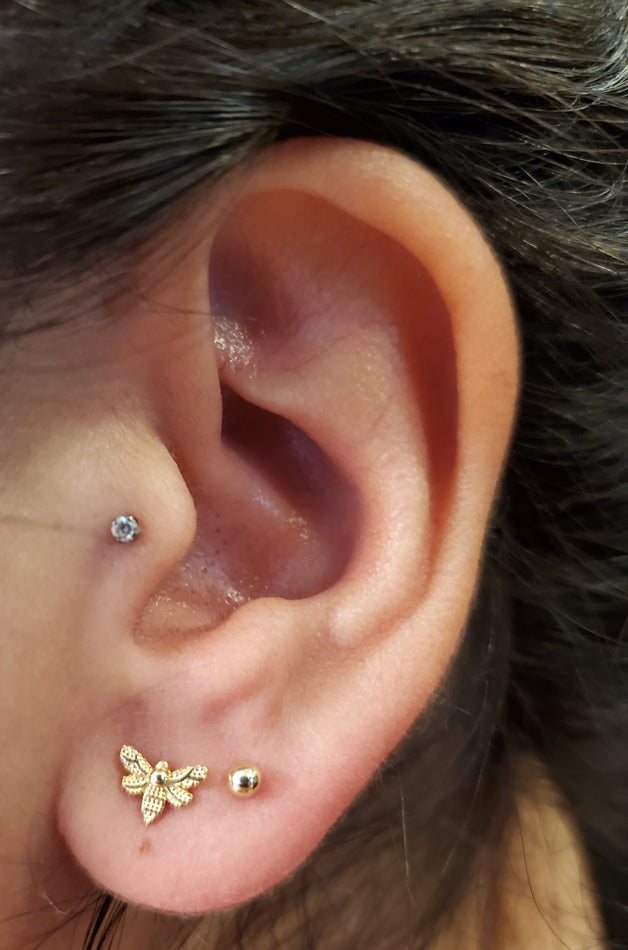 14K Yellow Gold Small Bee Stud earrings. These Earrings are 5.5mm or 0.21in long and 7.5mm or 0.27in wide. They come with 14k Yellow Gold backings and are beautifully displayed in a velvet gift box. Each pair is hand inspected before being shipped out.