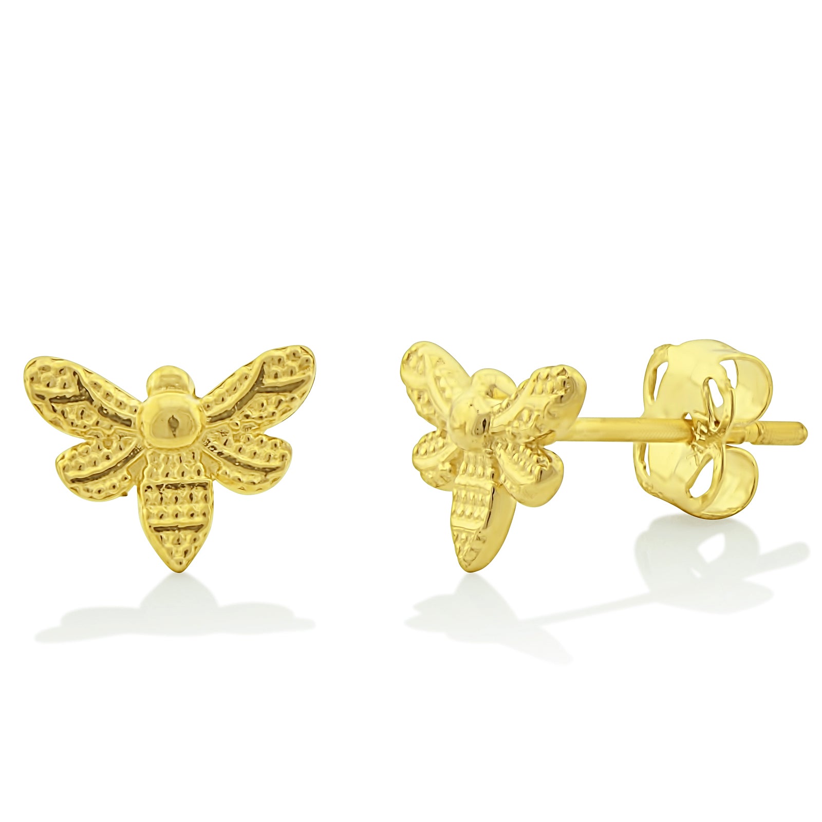 - 14K SOLID GOLD: This pair of 14K Yellow Gold Small Bee Stud Earrings - 0.27in is made of solid 14K gold and each piece is carefully Stamped with 14K for certification.