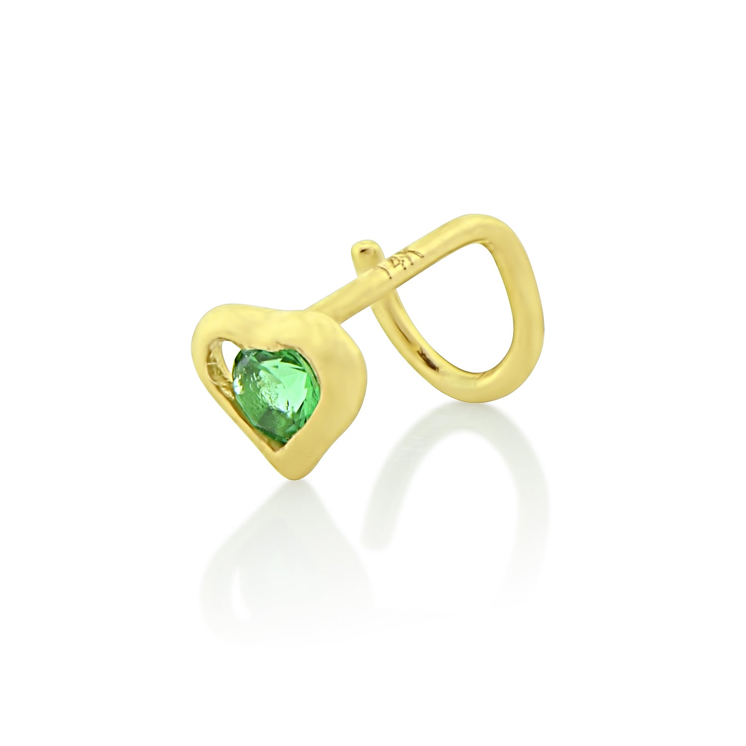 14K Yellow Gold Small Green Cz Heart Nose Ring