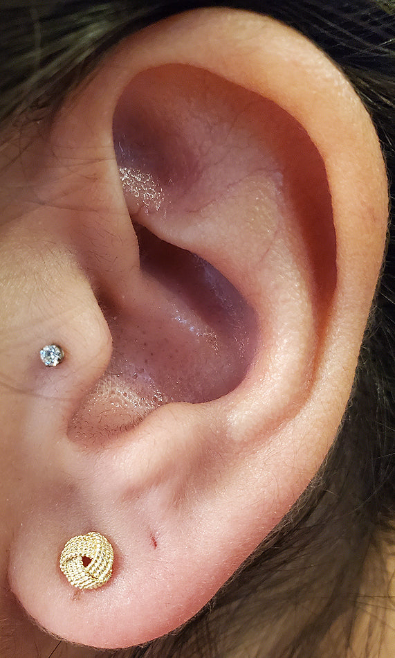 14K Yellow Gold Small Love Knot Stud earrings. These Earrings are 5.5mm or 0.21in long and 5.5mm or 0.21in wide. They come with 14k Yellow Gold backings and are beautifully displayed in a velvet gift box. Each pair is hand inspected before being shipped out.