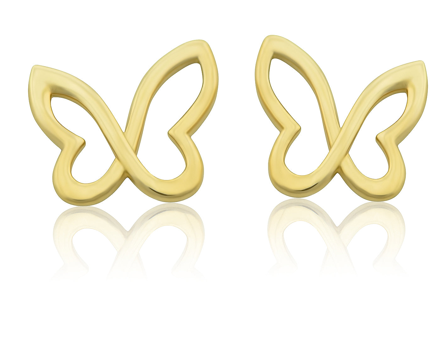 14K Yellow Gold Small Butterfly Stud earrings. These Earrings are 6mm or 0.23in long and 7mm or 0.27in wide. They come with 14k Yellow Gold backings and are beautifully displayed in a velvet gift box. Each pair is hand inspected before being shipped out.