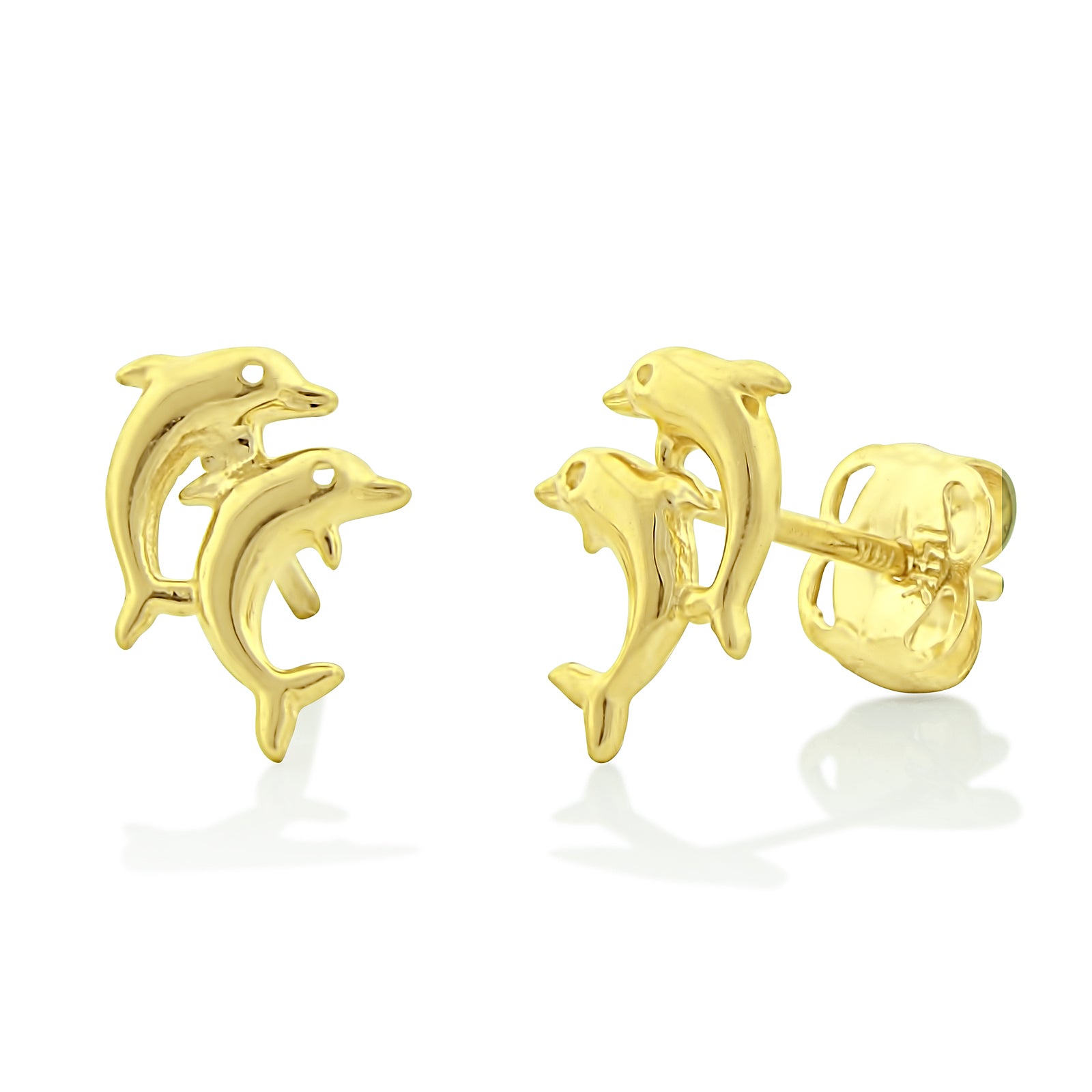 - 14K SOLID GOLD: This pair of 14K Yellow Gold Tiny Dolphins Stud Earrings - 0.24in is made of solid 14K gold and each piece is carefully Stamped with 14K for certification.