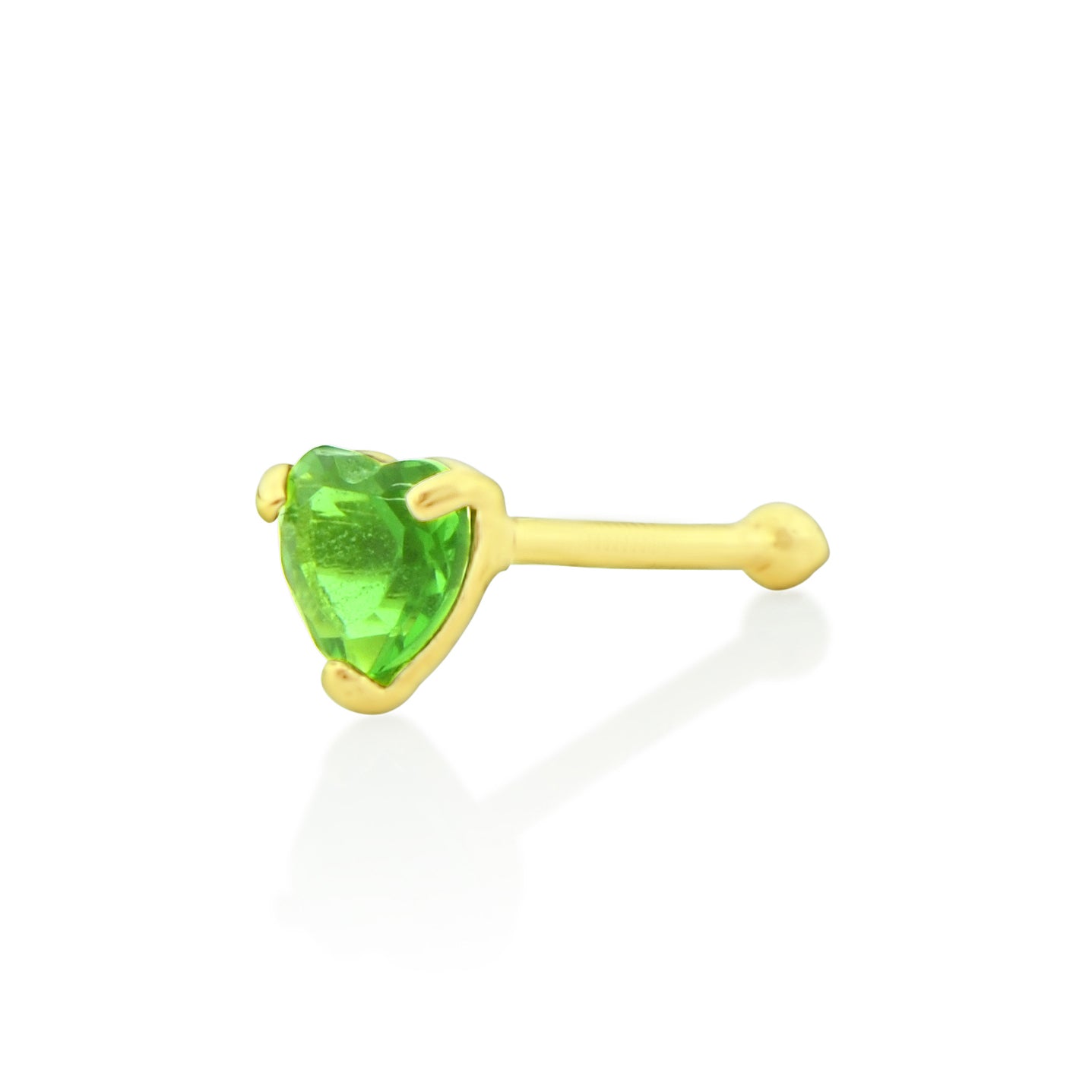 14K Yellow Gold Tiny Green Cz Heart Nose Ring
