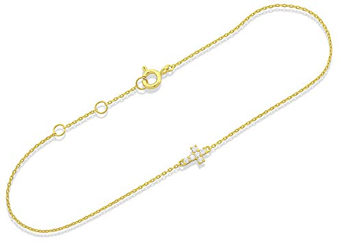 Sold 14K Yellow Gold CZ Small Sideways Cross Bracelet - 8in