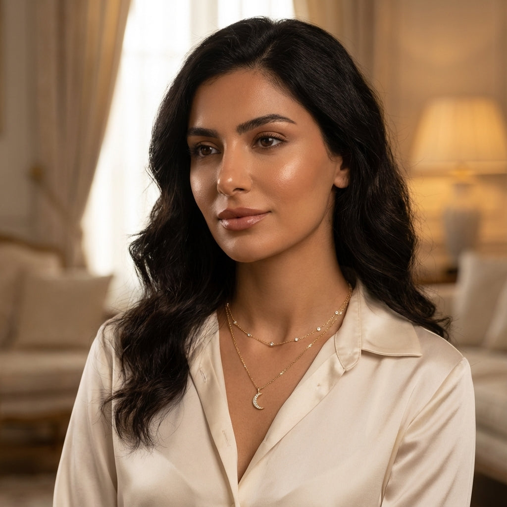 Solid 14k Gold Crescent Moon CZ Pendant for Women and Teens