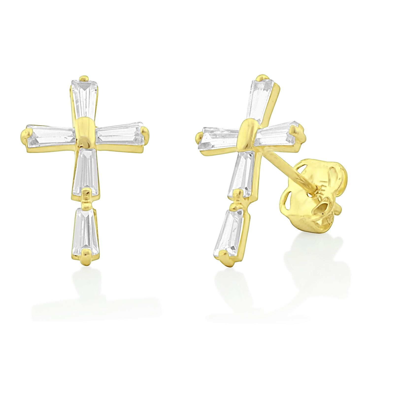 Solid 14K Yellow Gold Small Cz Cross Stud Earrings - 0.47in